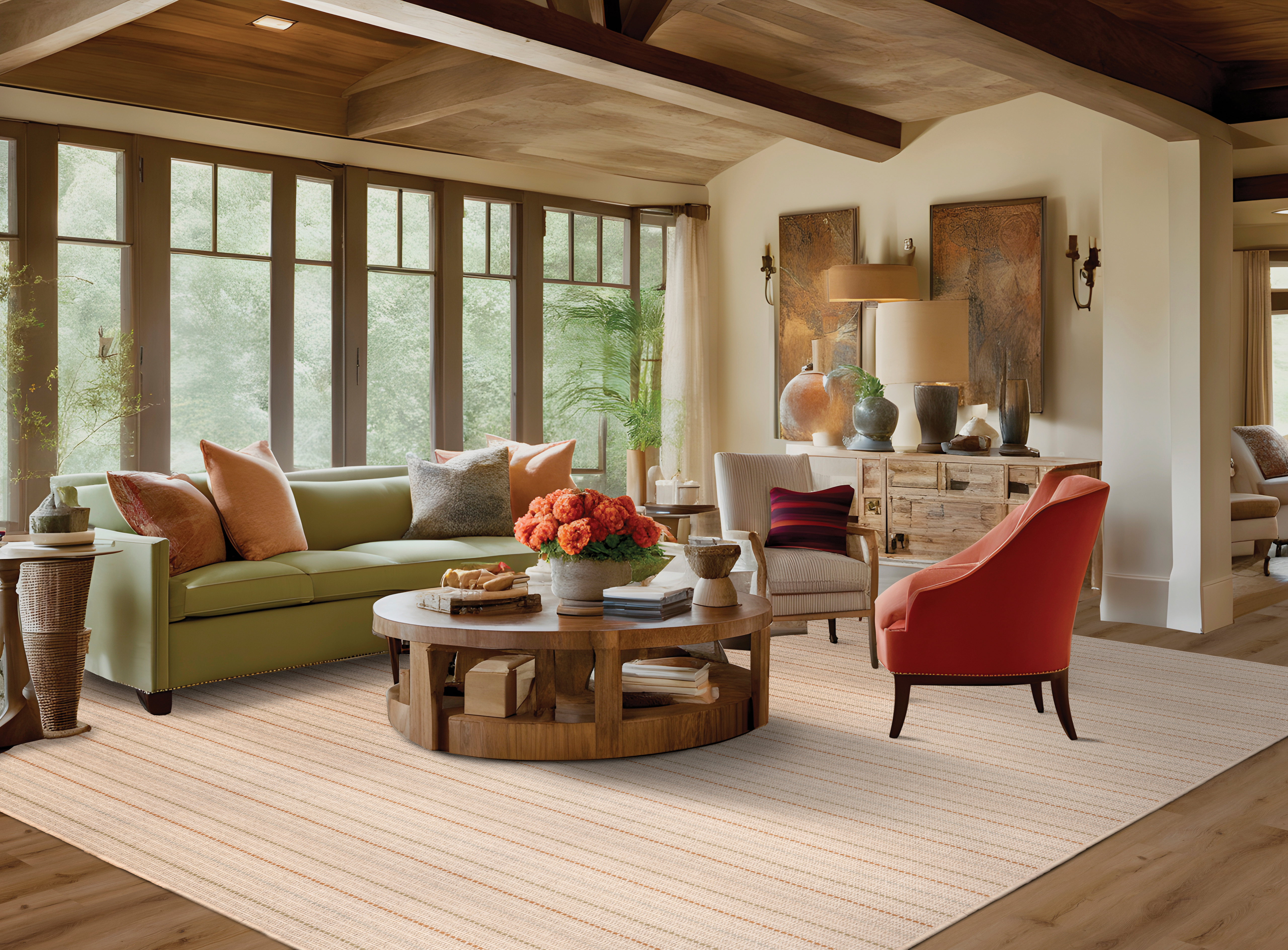 This chic horizontal stripe is a breath of fresh air. Fine color accents add zest to the dynamic loop pile, creating a lively rhythm across the surface. Hand-loomed from premium wool, this design combines modern flair with timeless craftsmanship, ensuring that its beauty and durability will enhance any room for years to come.