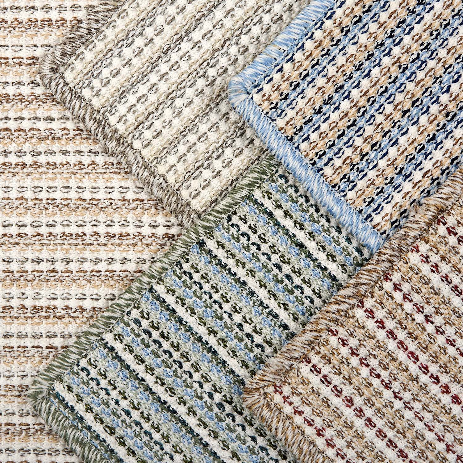 Renata captivates with its bold horizontal ombre design, where multi-tonal hues gracefully blend across a small-scale geometric weave. This flat-woven beauty offers a touch of rustic charm, evoking warmth and natural elegance. Its striking pattern repeats effortlessly, creating a dynamic yet refined look that brings an inviting, artisanal feel.
