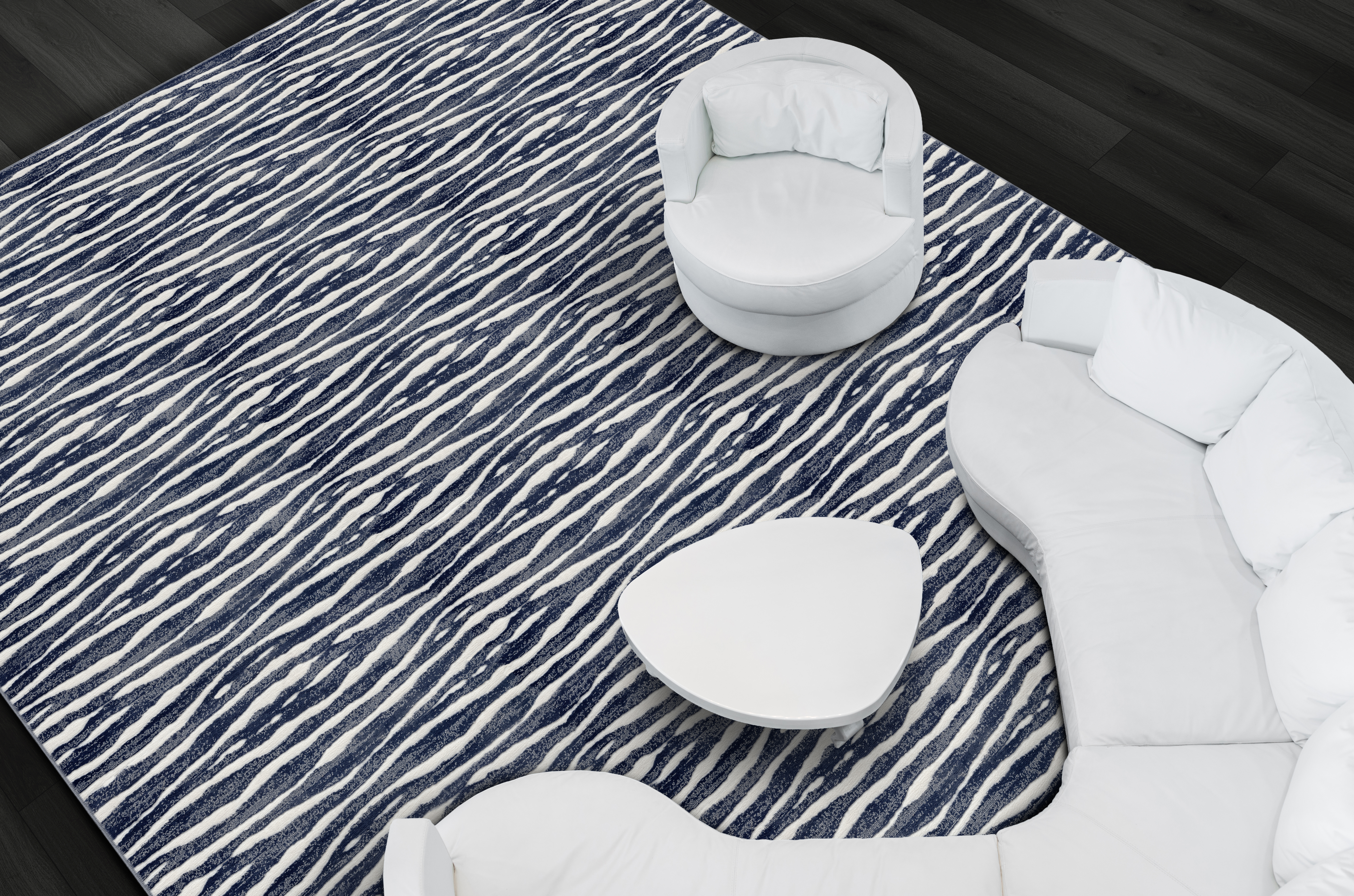 Delineate is striking design with a modern feel. The wave-like horizontal abstract runs across the width. High low pile, timeless colorations and luminous yarn make Delineate a cut above.