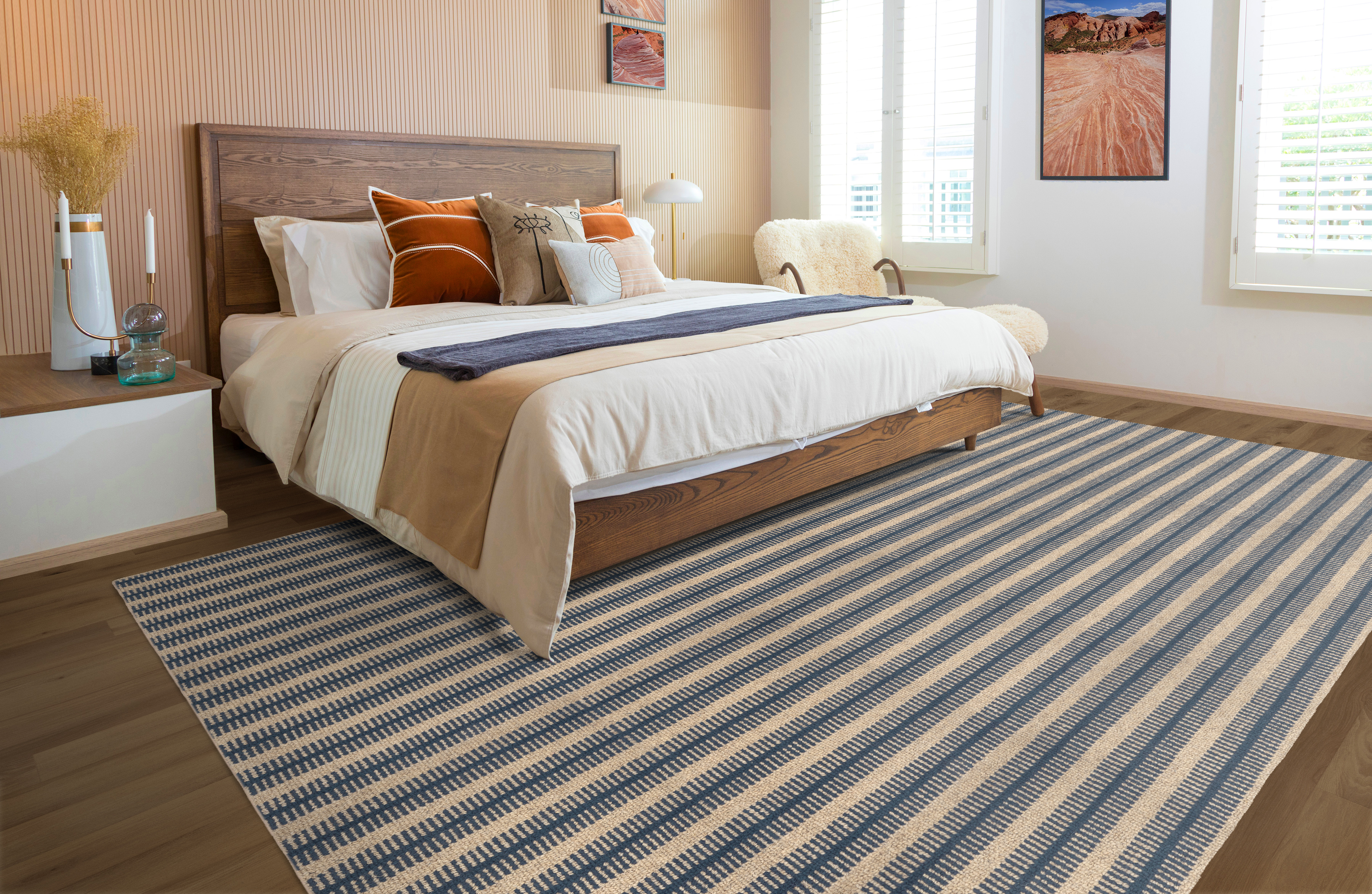 Bold linear motifs make this dense, cozy loop pile striking. The mixing of undyed wools with hints of color makes the range diverse and inviting. Woven in a trusted construction using high quality wool, Feng Shui is sure to flourish in the market.