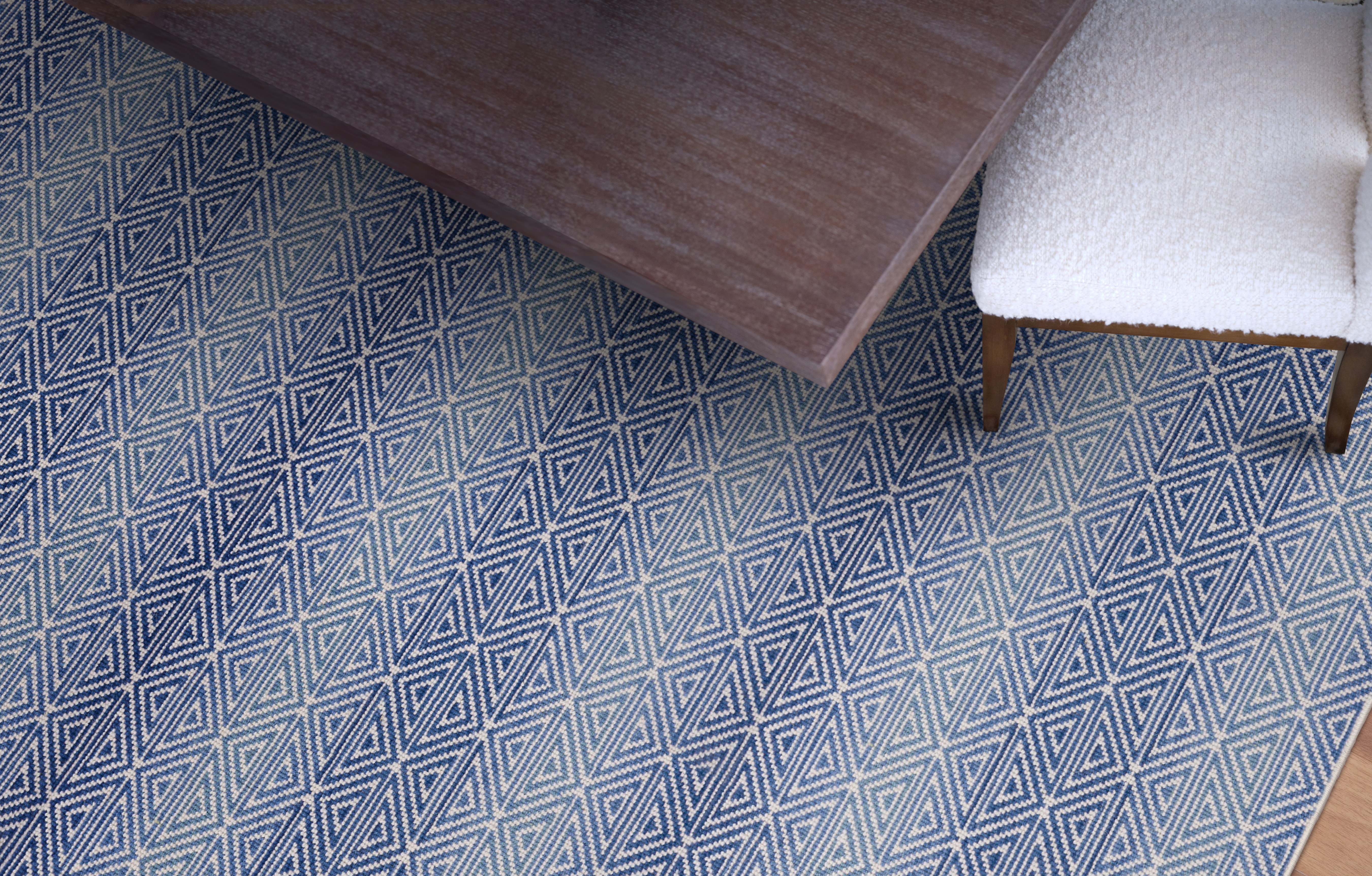 Introducing Korey, a captivating fusion of classic design and modern elegance. Korey reimagines the timeless diamond motif with a fresh, contemporary touch. This geometric masterpiece, crafted with the refined Wire Wilton technique, boasts an all-loop construction that ensures both durability and sophistication. Korey enchants with its graceful color ombre, softly transitioning shades across the carpets width.