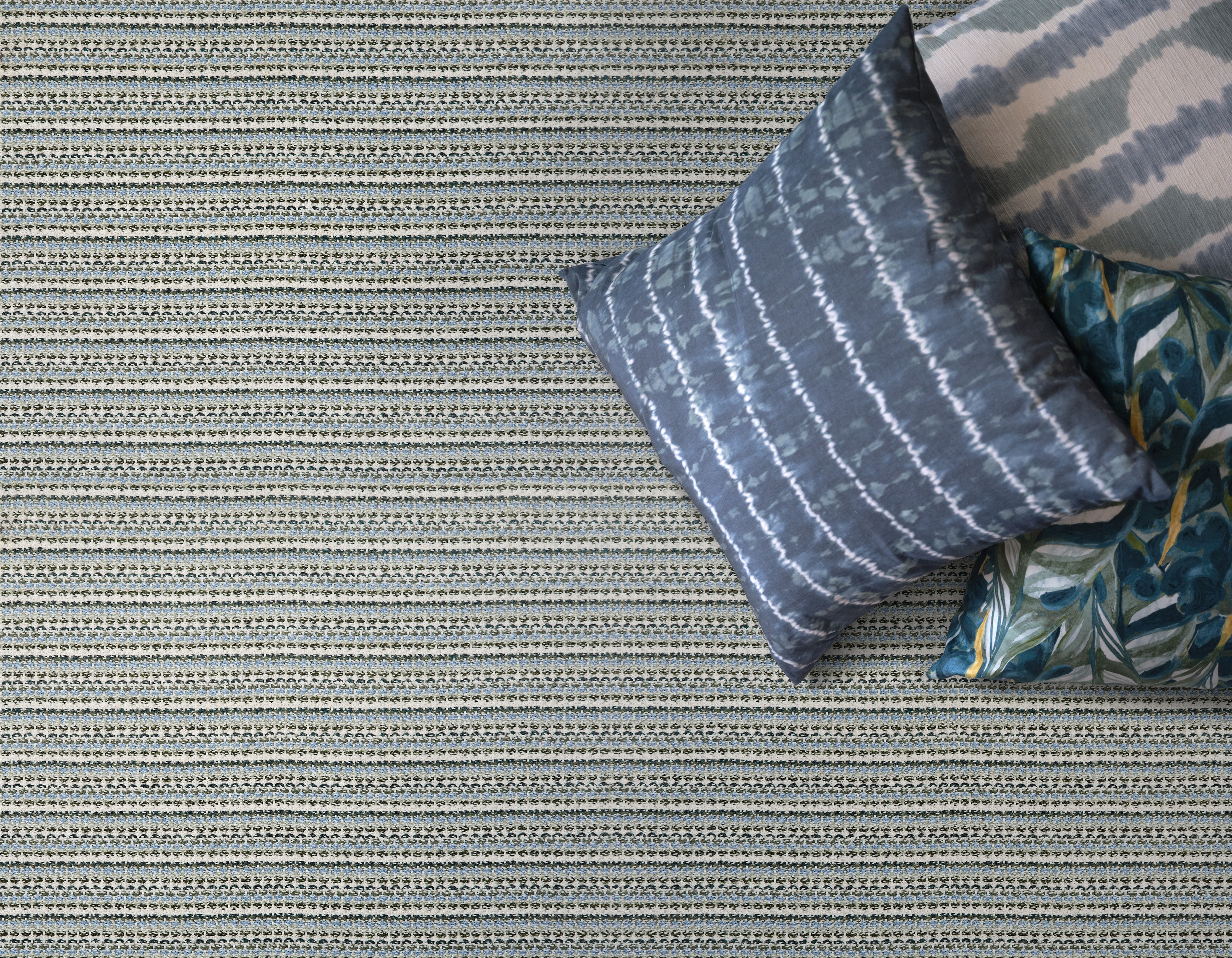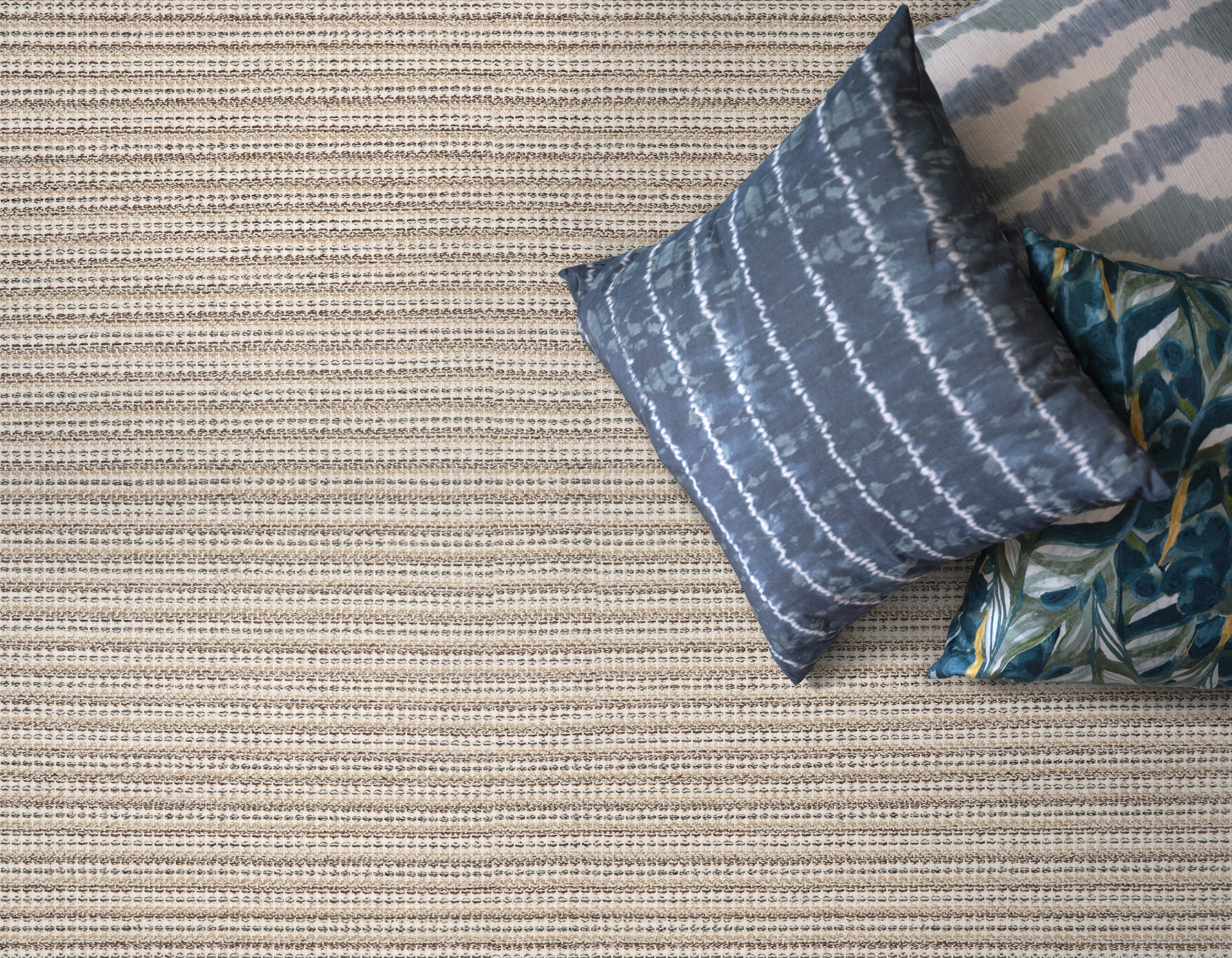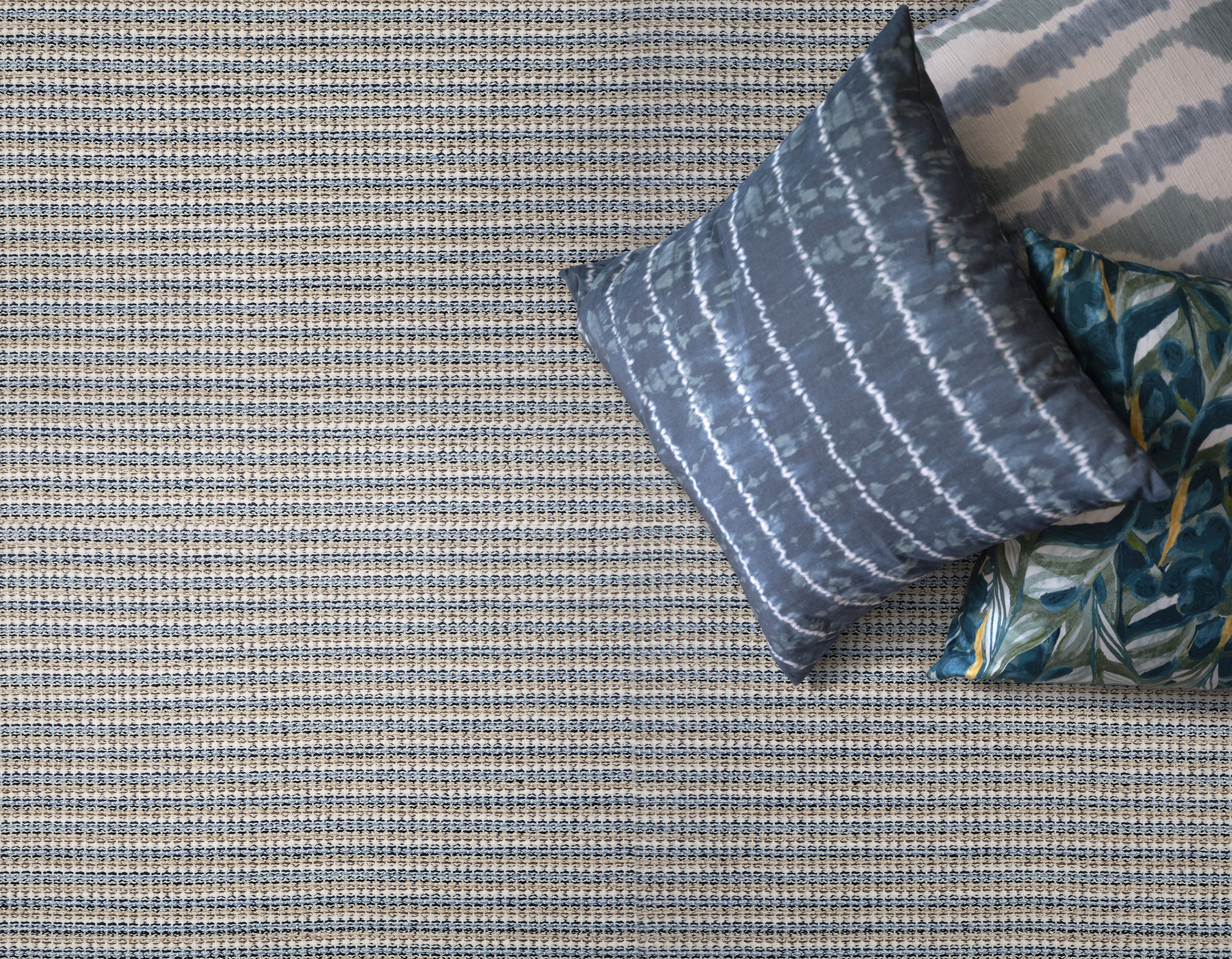 Leeward brings a refined touch to outdoor living with its small-scale horizontal stripe and subtle braid-like texture. Crafted from solution-dyed polypropylene, this multi-tonal carpet boasts a palette of 5-6 harmonious colors per colorway, ensuring durability and beauty in any environment. Effortlessly stylish and easy to maintain, Leeward is the perfect blend of practicality and sophistication for your outdoor spaces.
