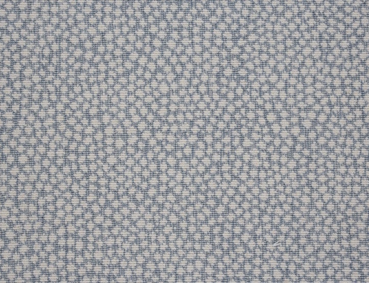 Animal skins complement a vast array of decorating styles; thus, their popularity is ever increasing. Maddox Cheetah features a stylized small scale animal pattern. With its fine needle point loops and intricate pattern structure, wire wilton is one of our most luxurious constructions. Bright blues, and soft yellows invigorate the color range. Tonal striations accentuate this subtle yet dressy aesthetic.