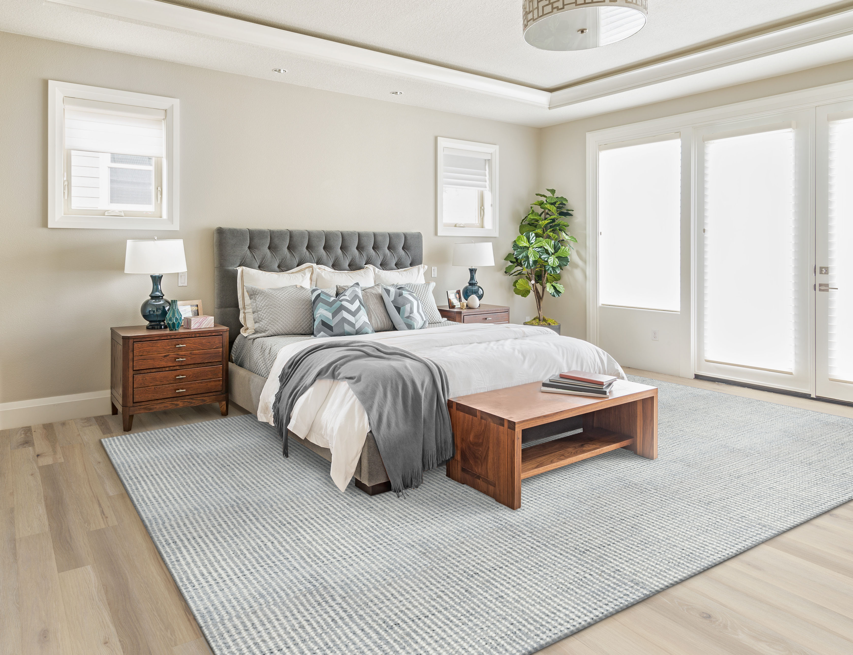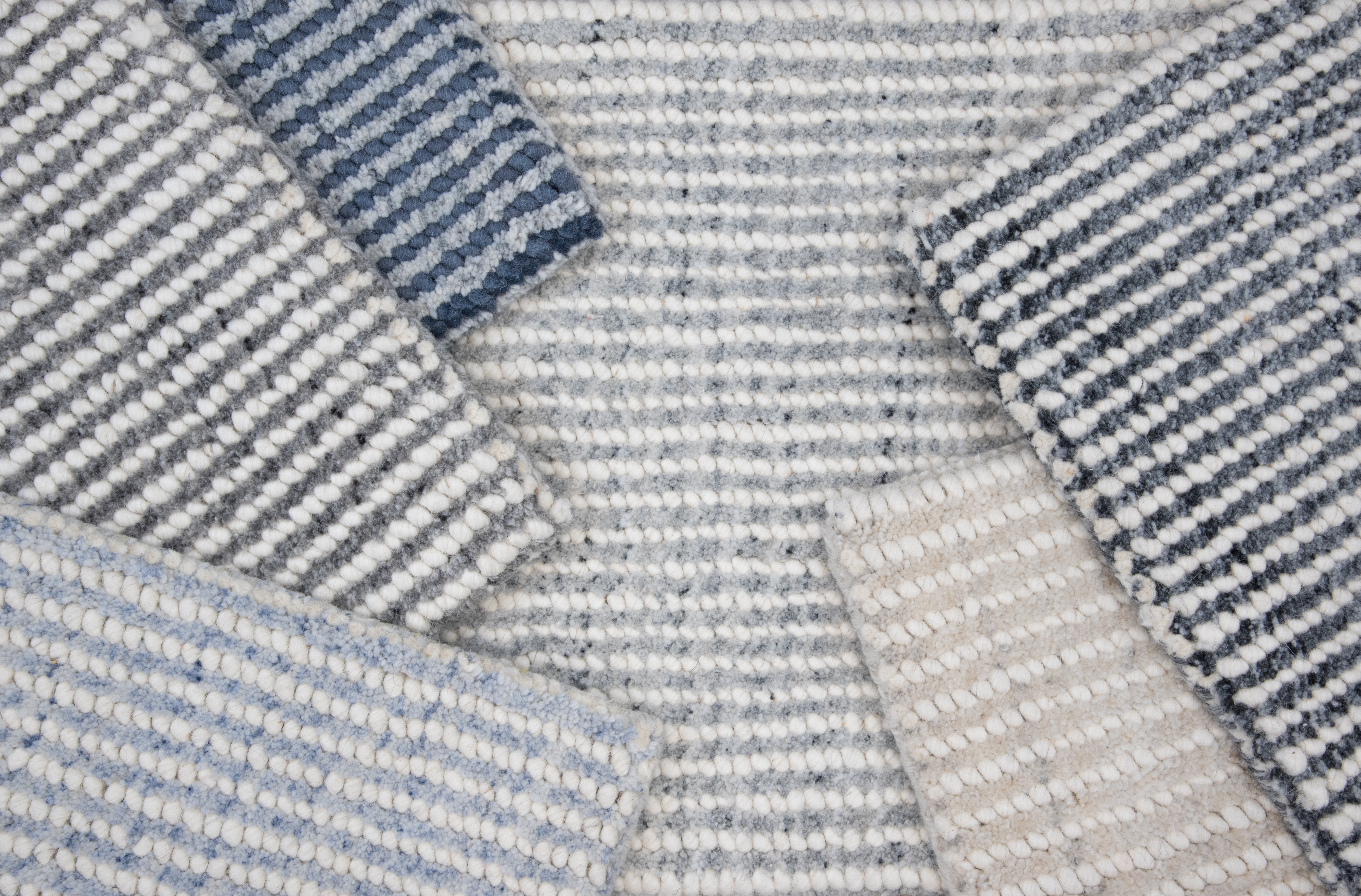 Mombasa is a remarkably dense cut and loop design that will surely turn heads. Thick felted wool loops couple beautifully with the hand spun cut pile. Delightful bursts of color run throughout the pile creating the understated striations. Gorgeous grey, a soft creamy white and a slate are just a few of the compelling colors. The soft, sumptuous hand seals the deal for Mombasa.
