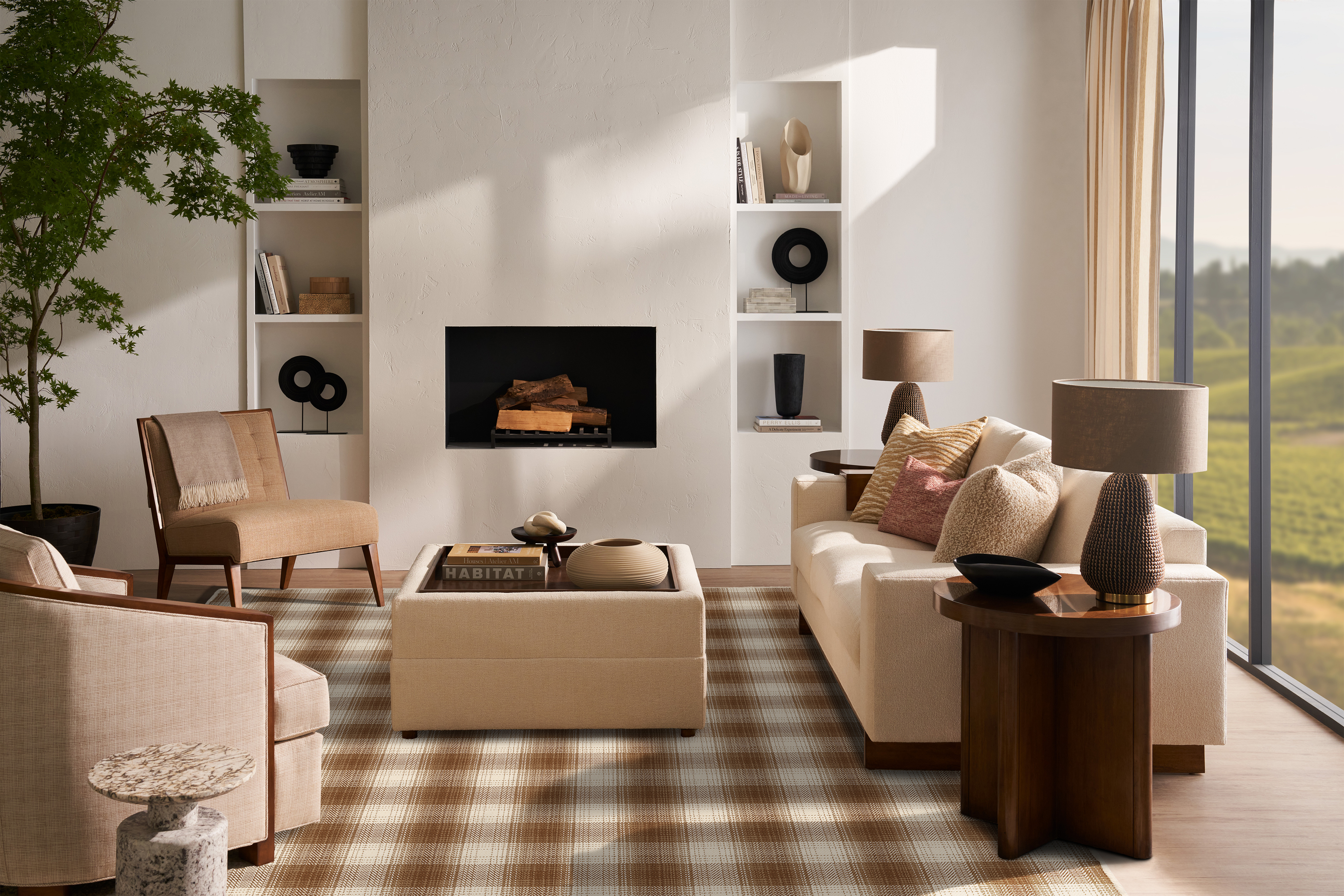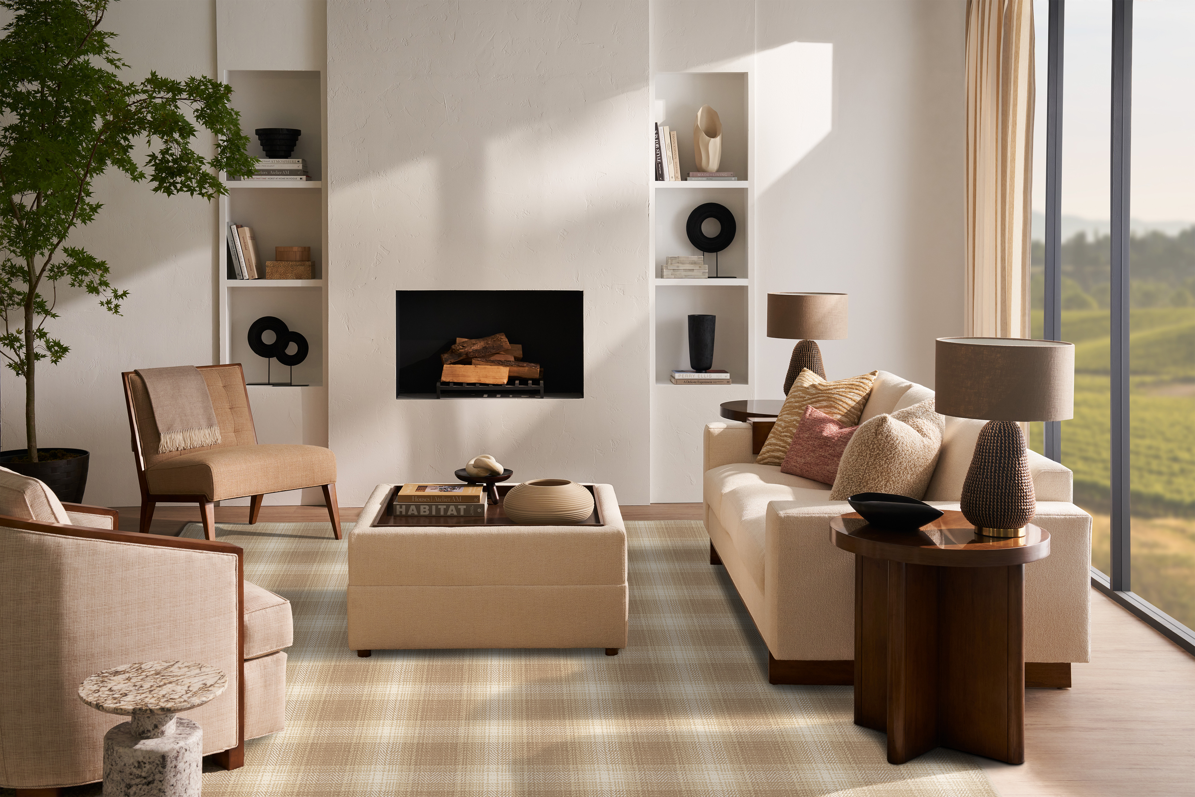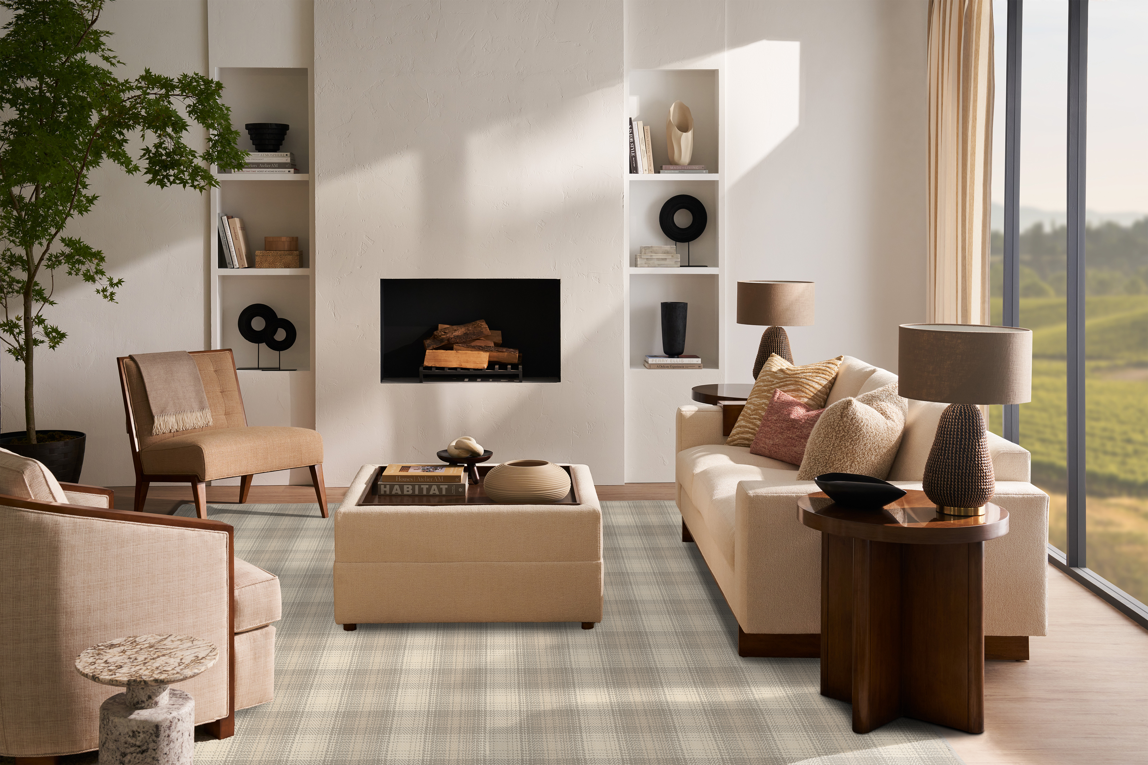 The Shetland carpet exudes a refined elegance, crafted from fine count New Zealand wool for a pristine tailored finish. Its classic plaid-inspired design, with a subtle herringbone weave, adds a touch of timeless sophistication. The high-quality yarn gives the pattern a soft brilliance, creating a medium-scale look that is both versatile and effortlessly luxurious.