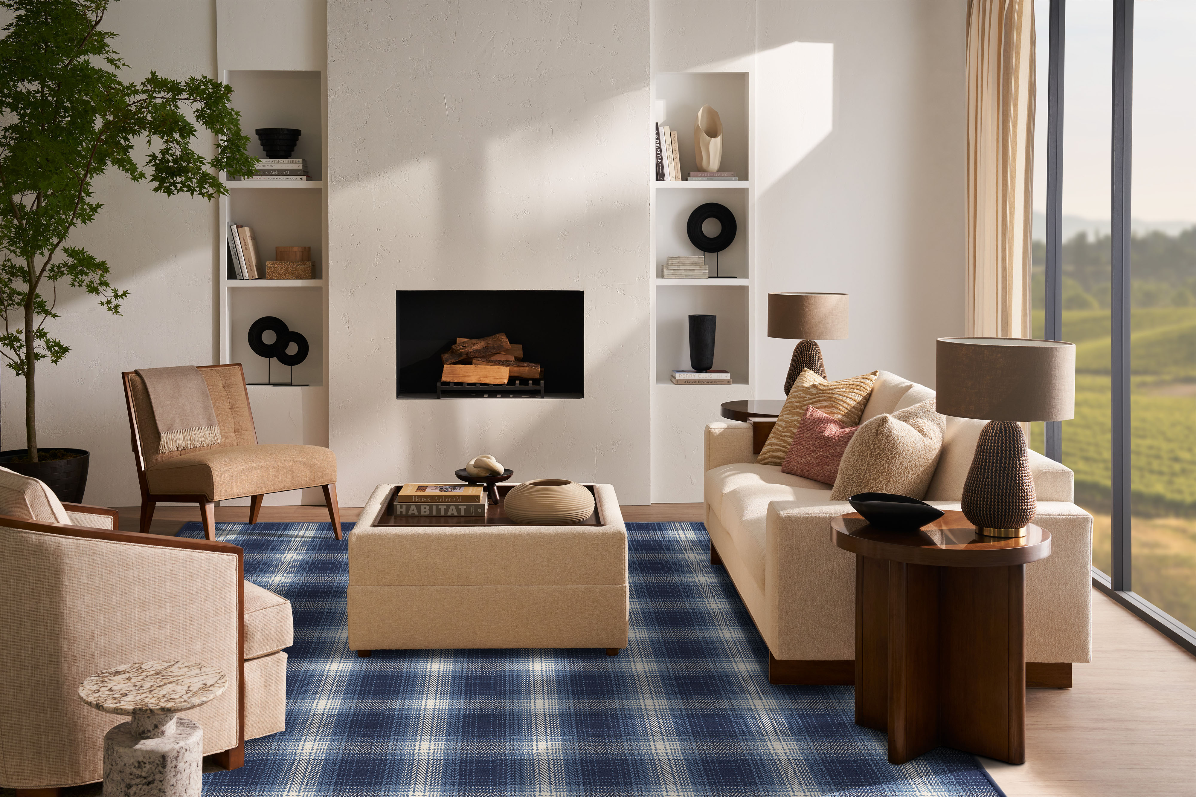 The Shetland carpet exudes a refined elegance, crafted from fine count New Zealand wool for a pristine tailored finish. Its classic plaid-inspired design, with a subtle herringbone weave, adds a touch of timeless sophistication. The high-quality yarn gives the pattern a soft brilliance, creating a medium-scale look that is both versatile and effortlessly luxurious.