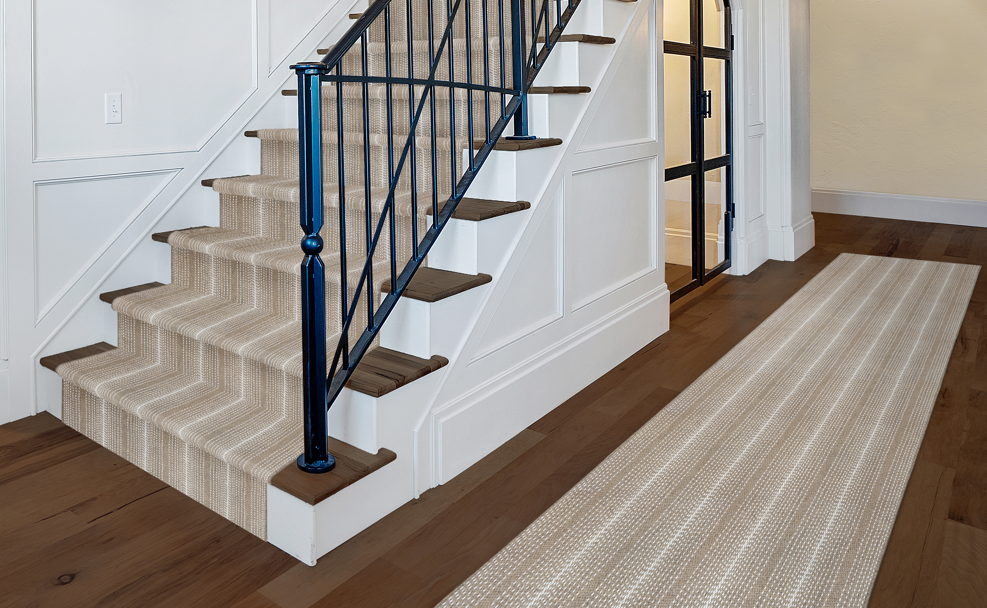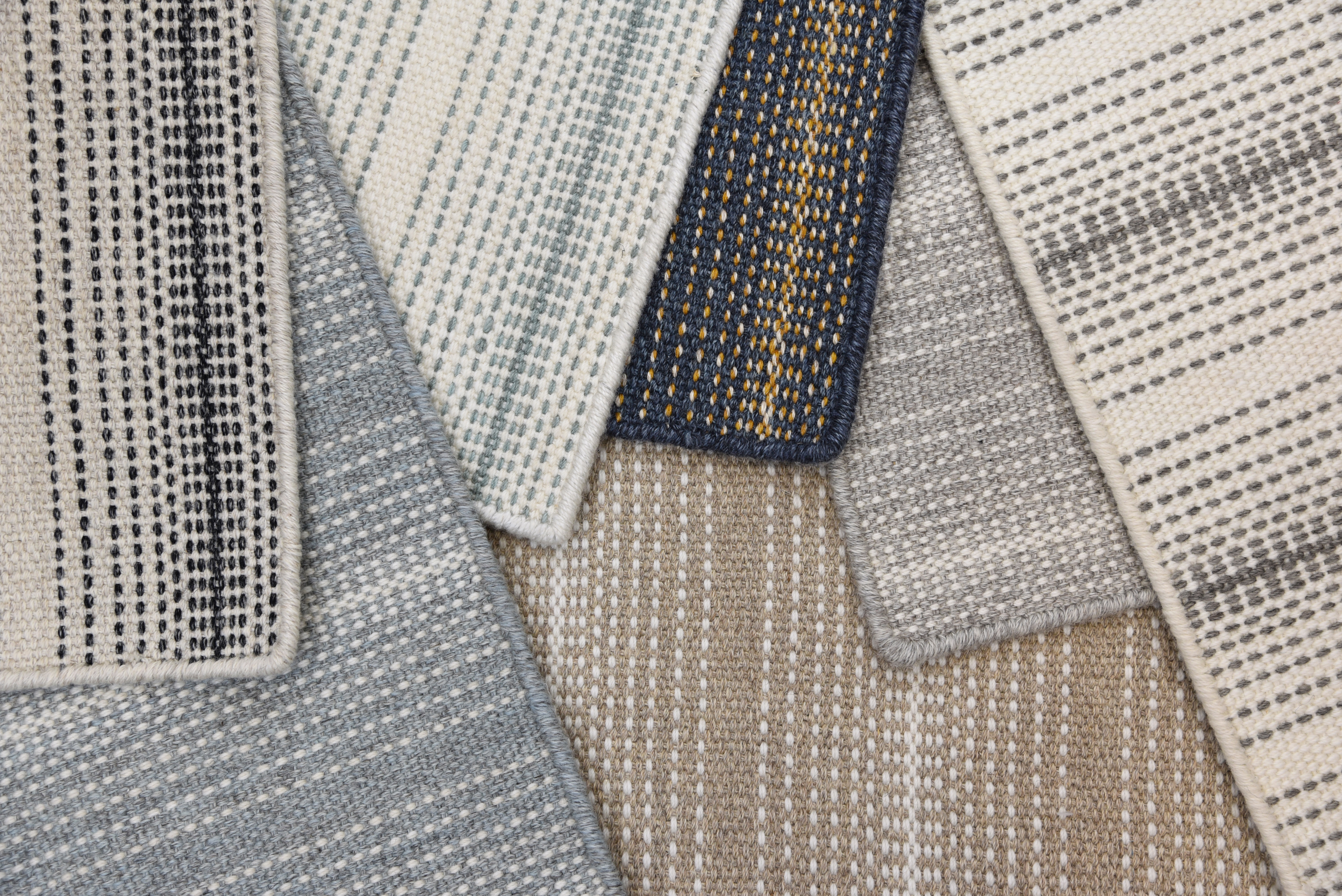 Theodore Stripe utilizes the same yarn system as Ticking Stripe and Tattersall. Thin, elegant pin stripes gracefully ombre in and out across the goods. The bright crisp New Zealand wool allows us to achieve the clearest most intense color. Theodore Stripe showcases two of Crescents newest color combinations. Deep mineral paired with crisp white. A saturated navy combined with vintage bourbon. Theodore stripe hits the core of livable luxury.