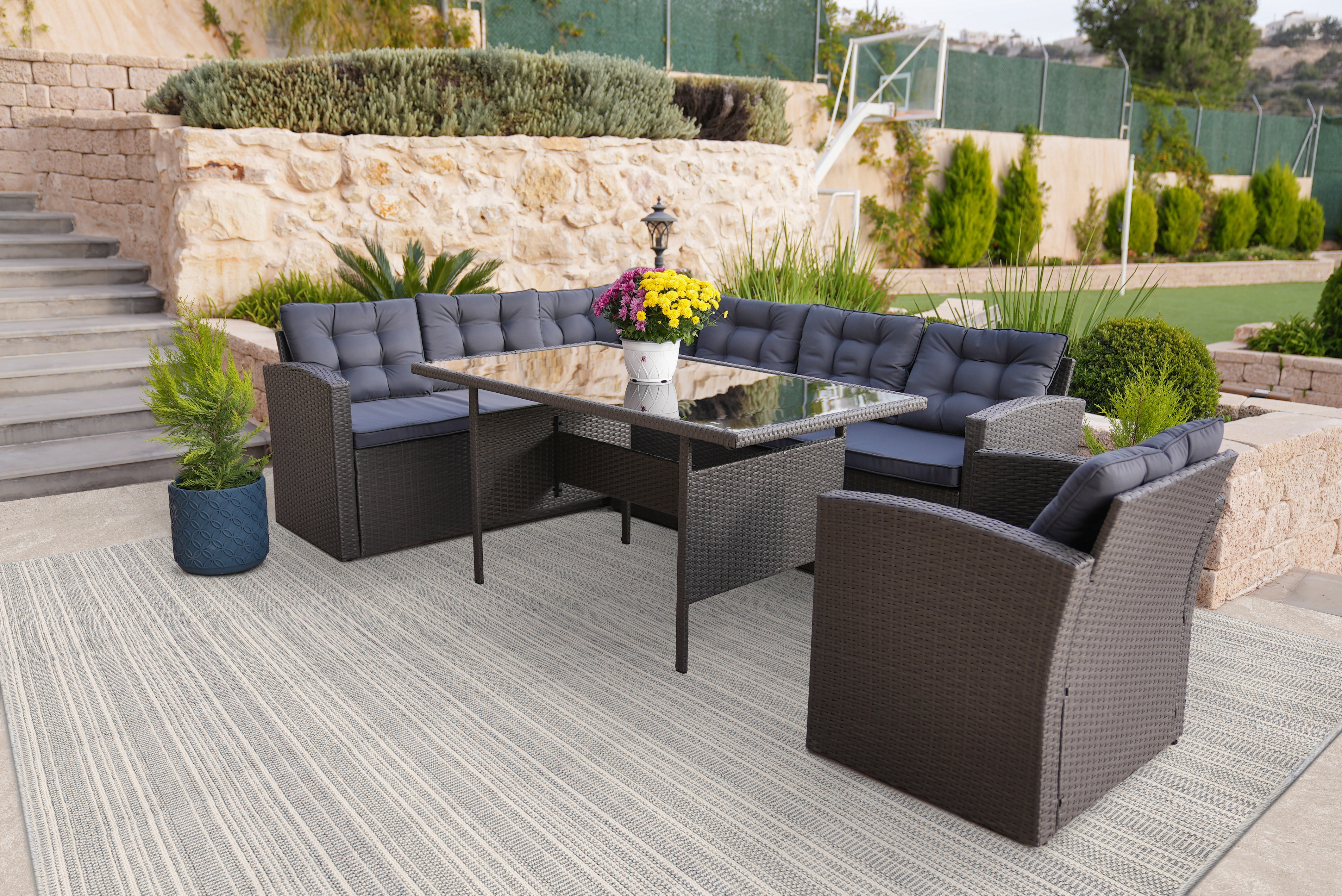 Whether in a sunroom or by the pool, this lofty chic loop texture is a winning choice. Its cheerful colorations spread warmth and joy, effortlessly withstanding the elements and adding a touch of elegance to any outdoor retreat. That is a winning combination.