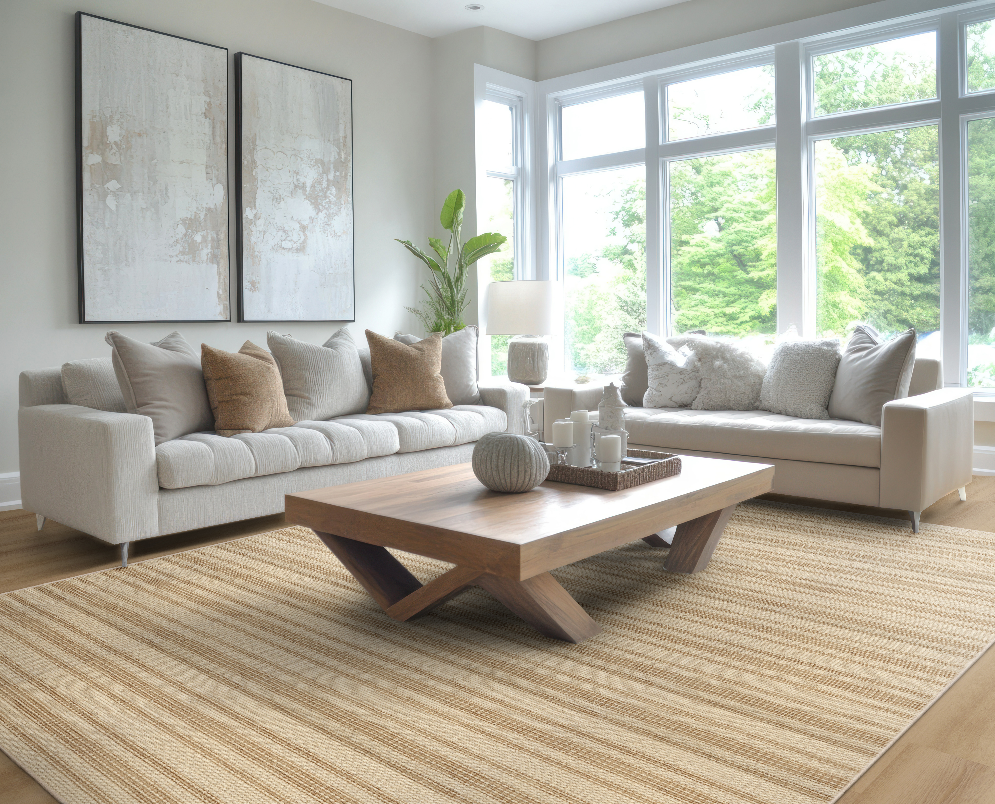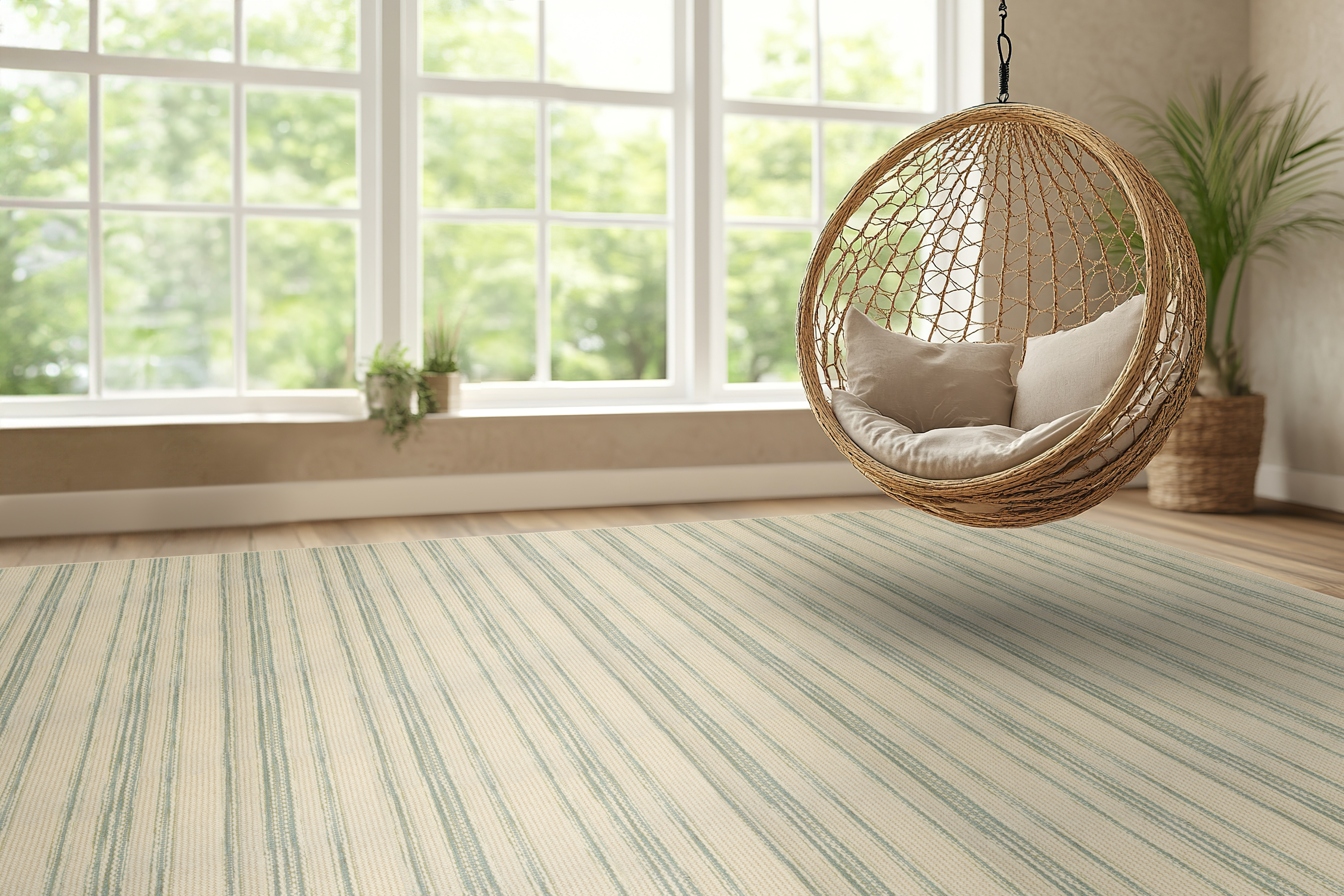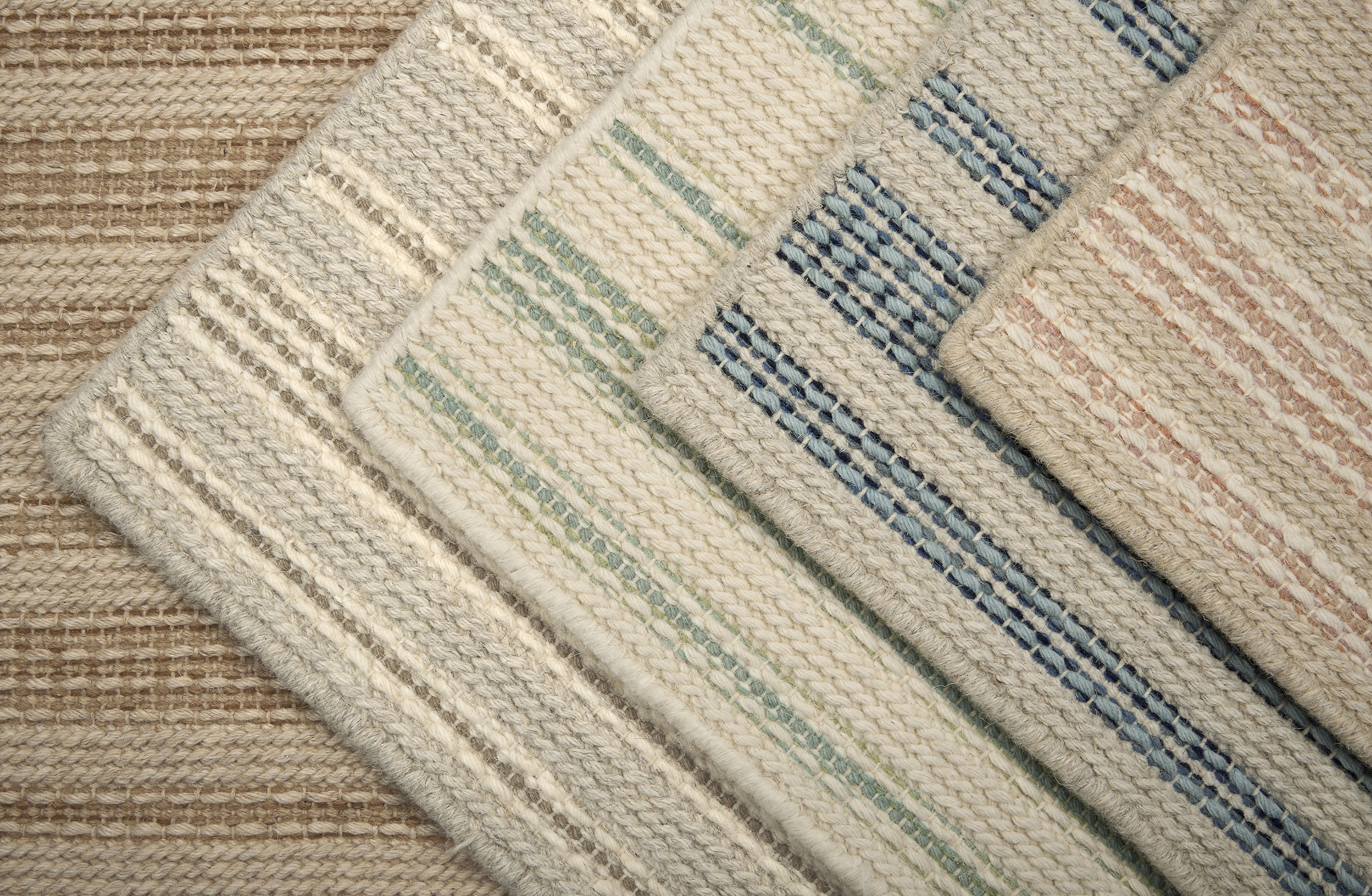 Rhodes is a delightful blend of wool and polyester, offering a soft and clean texture with impeccable loop construction. Its chunky pile features horizontal stripes with lofty loops and subtle multicolored yarns that bring vibrant pops of color to its natural, undyed tones. With its inviting feel and dynamic design, Rhodes transforms any space into a cozy and stylish retreat.